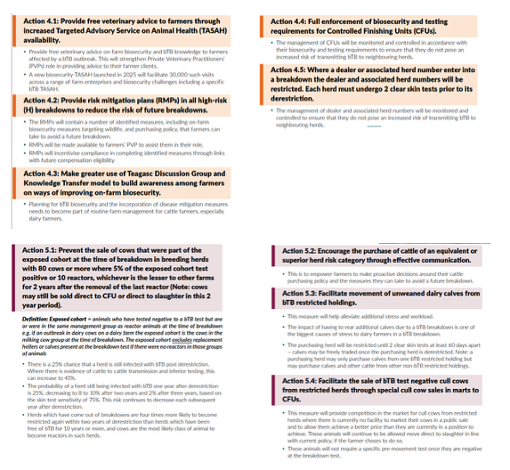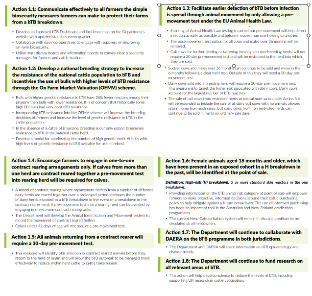 The TB action plan was launched by the Minister for Agriculture Martin Heydon on the 9th of September. The last engagement IFA had was a meeting held with the Minister on the 22nd of May. After this meeting a letter was sent to the Minister on the 3rd of June from the President outlining IFA’s position along with comments on the proposed measures. This was the last formal communication until the launch of the TB Action Plan. The TB Action plan lacks details on how measures will work and be implemented at farm level. Further engagement is needed with DAFM to iron out the details of each proposal. There is no date confirmed yet as to when these new measures will be in place.